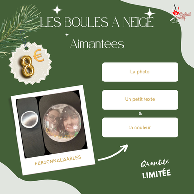 Description : Envoyez-moi une photo accompagnée d’un petit texte comme par exemple "Noël 2025" ou "Merci". Je créerai une jolie boule à neige aimantée qui trouvera fièrement sa place sur votre réfrigérateur tout au long de l’année !