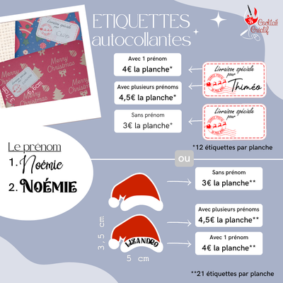 Description : Avec un ou plusieurs prénoms, ces étiquettes pour cadeaux ajoutent une touche de mystère en cachant votre écriture, pour que les enfants ne devinent pas de qui ils viennent ! Vous pouvez également opter pour des étiquettes vierges, parfaites pour écrire les prénoms à la main.